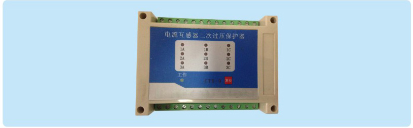 組合式電流互感器二次過電壓保護(hù)器主要用于各種CT二次側(cè)的異常過電壓保護(hù)。保護(hù)器固接于CT二次繞組兩端,正常運(yùn)行時泄漏電流小,呈高阻狀態(tài);當(dāng)CT二次回路開路或一次繞組出現(xiàn)異常過流時,二次繞組產(chǎn)生的電壓遠(yuǎn)遠(yuǎn)高于正常運(yùn)行電壓,些時保護(hù)器迅速動作而短路,面板上顯示故障的部位,并有無源接點(diǎn)信號輸出。故障排除后,按手動復(fù)位按鈕,電路恢復(fù)原狀后又重新設(shè)入正常運(yùn)行工作。